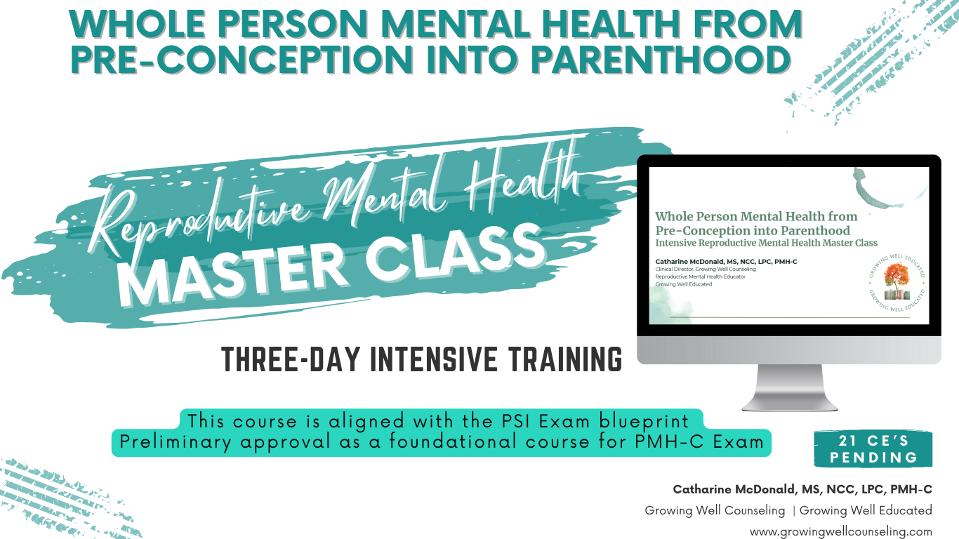 PSI Status Update 08/2025: This course is scheduling a pilot launch event with preliminary approval as a foundational course by Postpartum Support International (PSI). Upon completion of the pilot, Postpartum Support International’s Certification Team will render a final approval decision.